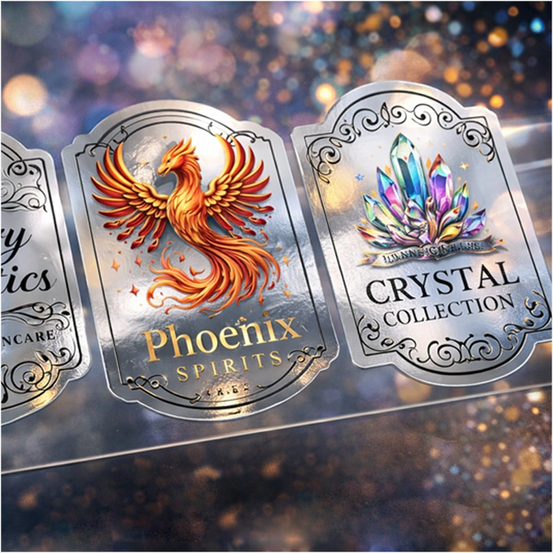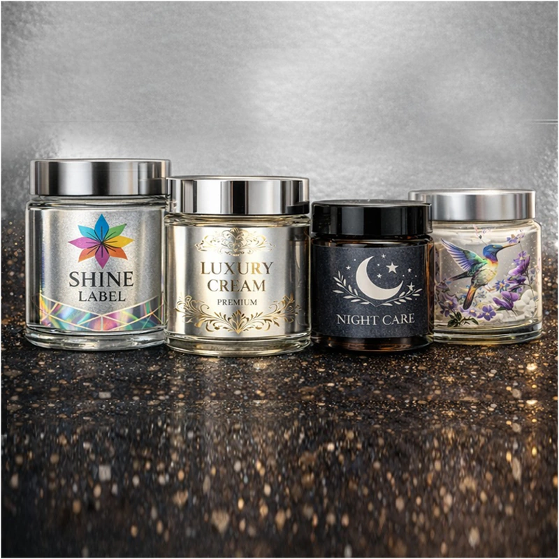 - Film metalizado plateado: el sustrato influye en el aspecto final de los colores: la base metálica puede dar un efecto de "brillo", cambios de tono y realce metálico.