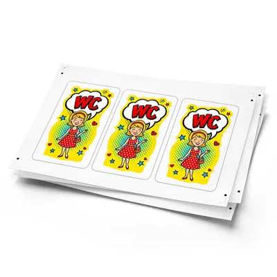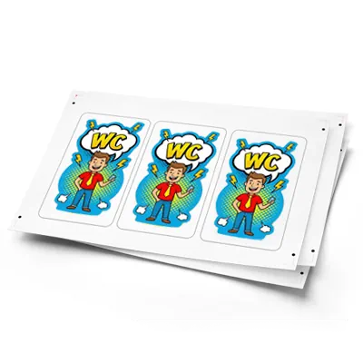 En este grupo ofrecemos etiquetas impresas en papeles neón, kraft y en film transparente. La impresión se realiza en tecnología digital (toner) en máquinas Ricoh, lo que garantiza una alta calidad y precisión de ejecución, así como un precio atractivo para tiradas bajas. Existe la posibilidad de imprimir con tóner blanco, aunque nuestras máquinas de inyección de tinta ofrecen una mejor calidad de impresión en blanco. Los productos se entregan en hojas o pueden cortarse en unidades individuales.